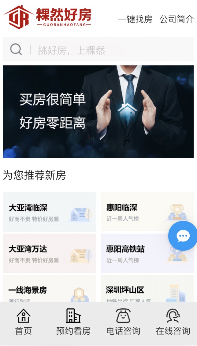 粿然好房是一家新型房地產(chǎn)線上代理平臺(tái),平臺(tái)能準(zhǔn)確把握行業(yè)市場新動(dòng)態(tài),為客戶快速傳遞房產(chǎn)新商情,業(yè)務(wù)涵蓋二手住宅、