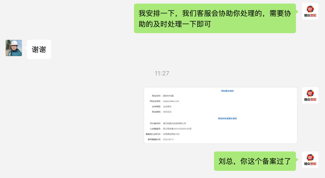 尊敬的客戶您好,今天上午有部分客戶接到武漢網(wǎng)警短信提醒,到全國(guó)互聯(lián)網(wǎng)安全管理服務(wù)平臺(tái)提交備案申請(qǐng)。請(qǐng)收到通知的客戶和我們的客服聯(lián)系先確認(rèn)是否未提交,部分客戶已經(jīng)提交,無(wú)需重復(fù)提交,如下圖: