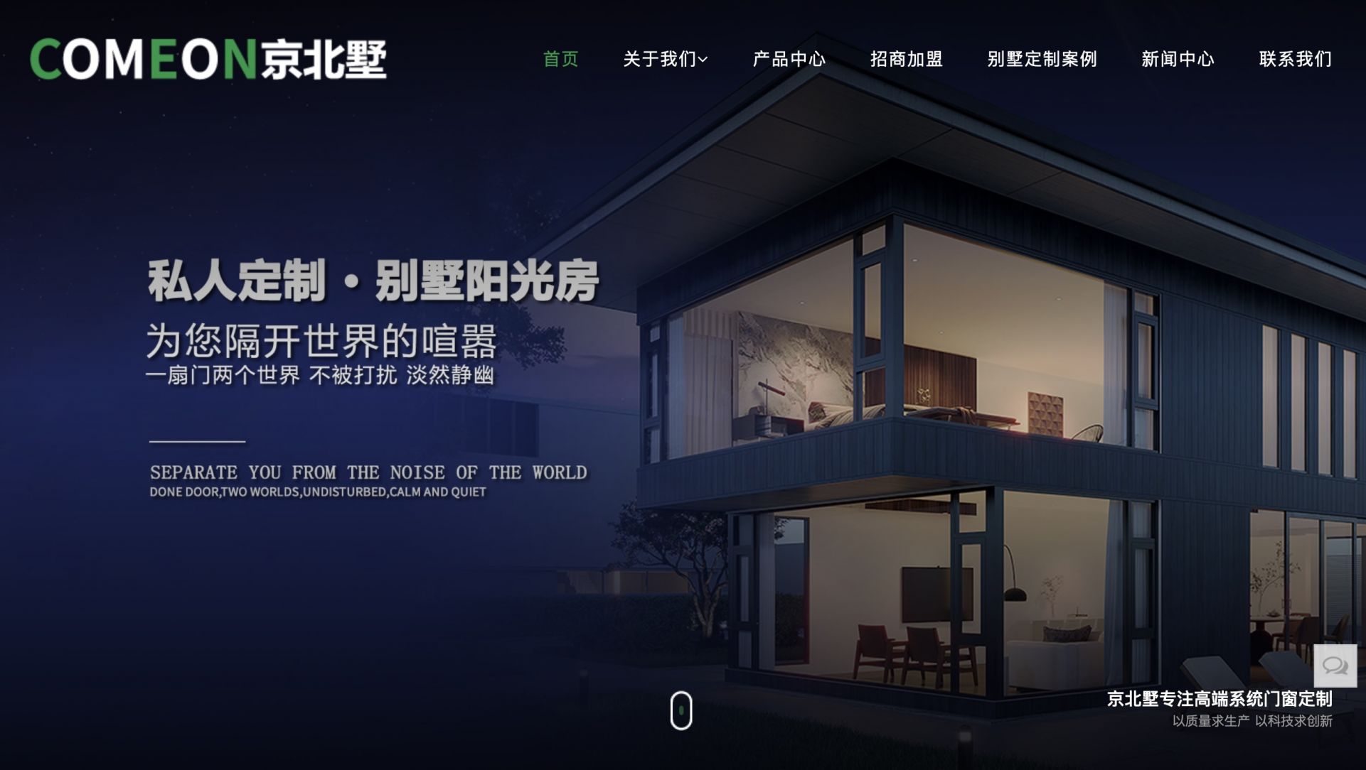 熱烈慶祝北京北墅門窗有限公司網(wǎng)站建設(shè)完成并上線!北京北墅門窗有限公司注冊(cè)商標(biāo)COMEON京北墅,是一家從事鈦鎂鋁合金智能門窗研發(fā)、生產(chǎn)、銷售為一體的綜合性企業(yè)。公司引進(jìn)先進(jìn)設(shè)備技術(shù),吸取家居行業(yè)生產(chǎn)、管理經(jīng)驗(yàn),靈活選擇適合本企業(yè)實(shí)際的生產(chǎn)工藝和管理模式,并擁有大批杰出的研發(fā)與管理專業(yè)人才,保證工藝技術(shù)的先進(jìn)性和可靠性。