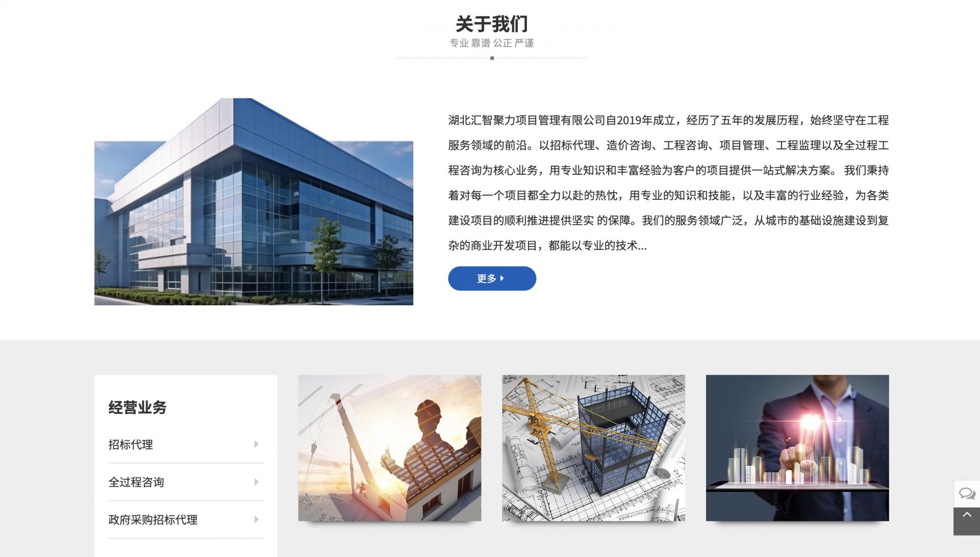 熱烈慶祝湖北匯智聚力項目管理有限公司網(wǎng)站建設(shè)完成并上線!湖北匯智聚力項目管理有限公司自2019年成立,經(jīng)歷了五年的發(fā)展歷程,始終堅守在工程服務(wù)領(lǐng)域的前沿。以招標(biāo)代理、造價咨詢、工程咨詢、項目管理、工程監(jiān)理以及全過程工程咨詢?yōu)楹诵臉I(yè)務(wù),用專業(yè)知識和豐富經(jīng)驗為客戶的項目提供一站式解決方案。