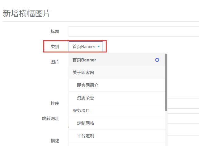 2.在右側(cè)【新增橫幅圖片】點擊【類別】選擇內(nèi)頁欄目
