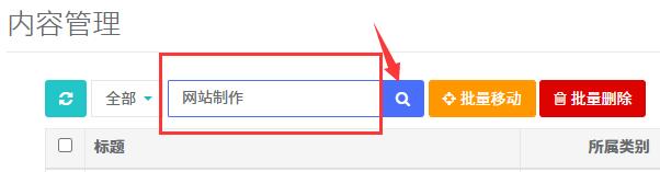 2.進入【內(nèi)容管理】,在搜索框輸入要搜索新聞的關(guān)鍵字,點擊【放大鏡】搜索