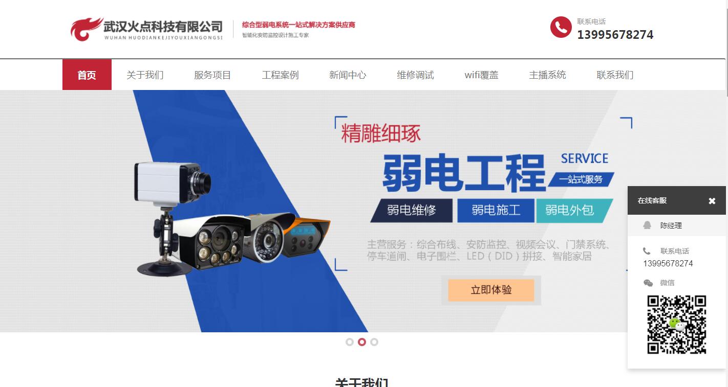 武漢火點(diǎn)科技有限公司擁有多年施工設(shè)計(jì)服務(wù)經(jīng)驗(yàn),位于風(fēng)景秀麗的—湖北省武漢市,主營服務(wù):綜合布線、安防監(jiān)控、視頻會(huì)議、門禁系統(tǒng)、停車道閘、電子圍欄、液晶拼接屏、智能家居、無線覆蓋、主播系統(tǒng),提供安防監(jiān)控現(xiàn)場查勘設(shè)計(jì)報(bào)價(jià)、提供安防全套產(chǎn)品、施工安裝到售后等全套服務(wù),我們經(jīng)驗(yàn)豐富,服務(wù)客戶多年項(xiàng)目超百起,工程技術(shù)人員23名,主要生產(chǎn)設(shè)備及關(guān)鍵檢測調(diào)試儀器齊全。