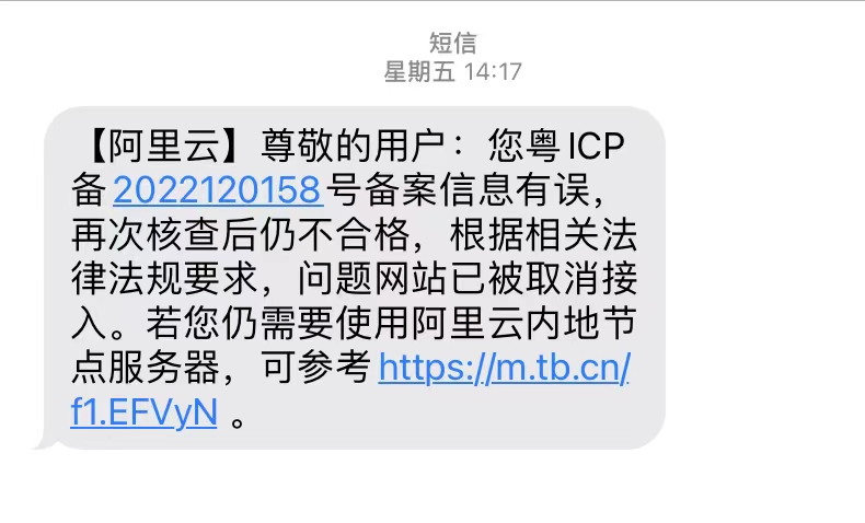 收到網(wǎng)站備案核驗信息需要及時處理,將正確信息提交審核通過即可。如果不及時處理,備案號就會被注銷,導(dǎo)致域名無法訪問,如下圖: