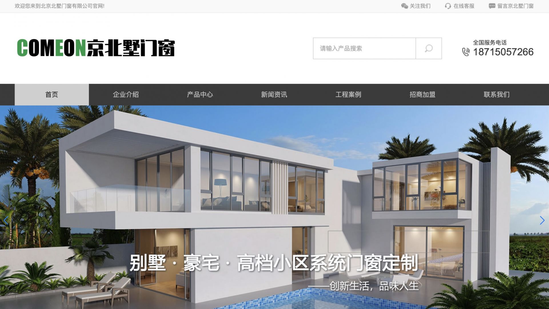 熱烈慶祝北京北墅門窗有限公司網(wǎng)站建設(shè)完成并上線!北京北墅門窗有限公司注冊(cè)商標(biāo)COMEON京北墅,是一家從事鈦鎂鋁合金智能門窗研發(fā)、生產(chǎn)、銷售為一體的綜合性企業(yè)。公司引進(jìn)先進(jìn)設(shè)備技術(shù),吸取家居行業(yè)生產(chǎn)、管理經(jīng)驗(yàn),靈活選擇適合本企業(yè)實(shí)際的生產(chǎn)工藝和管理模式,并擁有大批杰出的研發(fā)與管理專業(yè)人才,保證工藝技術(shù)的先進(jìn)性和可靠性。