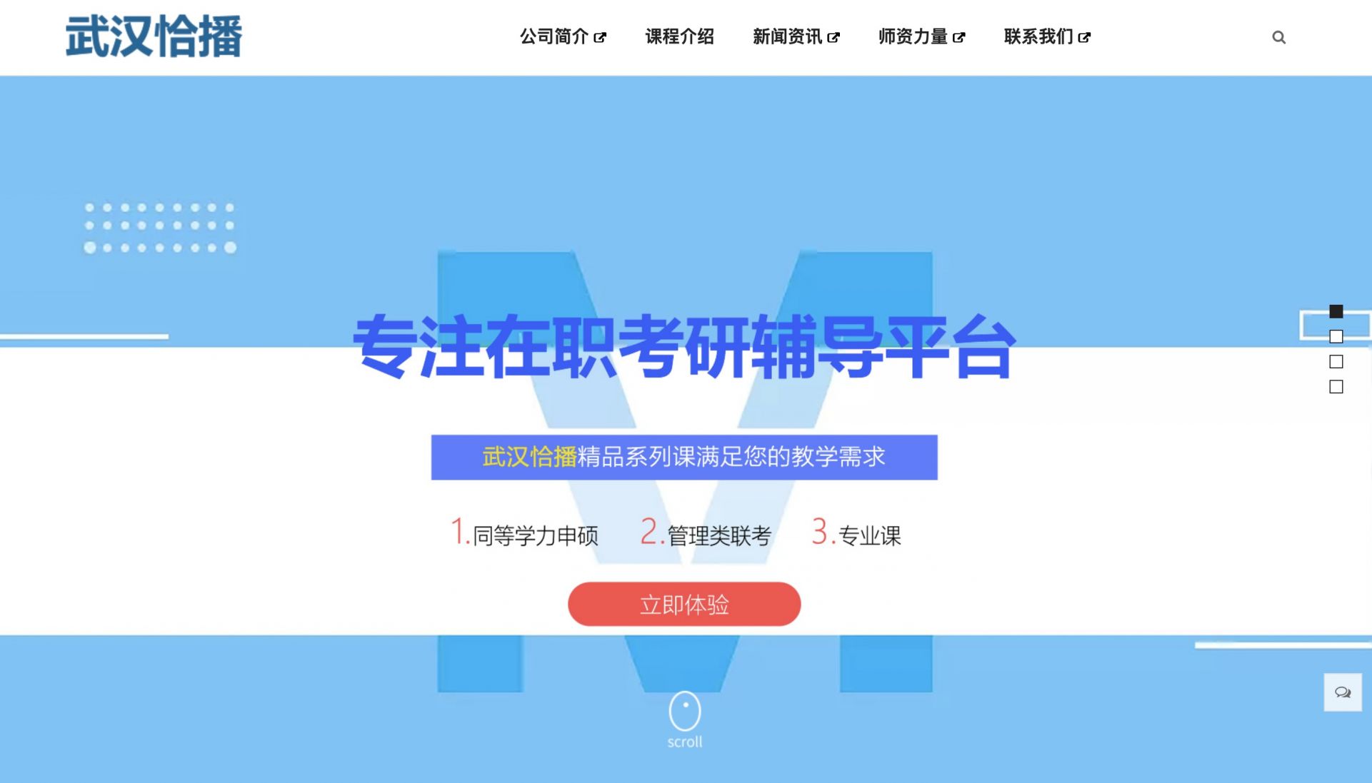 熱烈慶祝武漢恰播互聯(lián)網(wǎng)科技有限公司網(wǎng)站建設(shè)完成并上線!武漢恰播互聯(lián)網(wǎng)科技有限公司,位于武昌區(qū)楚河漢街地帶,主要從事職業(yè)資格證書(shū)這一行業(yè);教育平臺(tái)技術(shù)開(kāi)發(fā)、技術(shù)服務(wù)、技術(shù)咨詢。公司具有良好的社會(huì)資源,優(yōu)秀的員工隊(duì)伍,制定可行務(wù)實(shí)的企業(yè)營(yíng)銷(xiāo)戰(zhàn)略,建立完善的銷(xiāo)售服務(wù)體系,打造以職業(yè)資格證產(chǎn)業(yè)為主的專(zhuān)業(yè)性品牌。