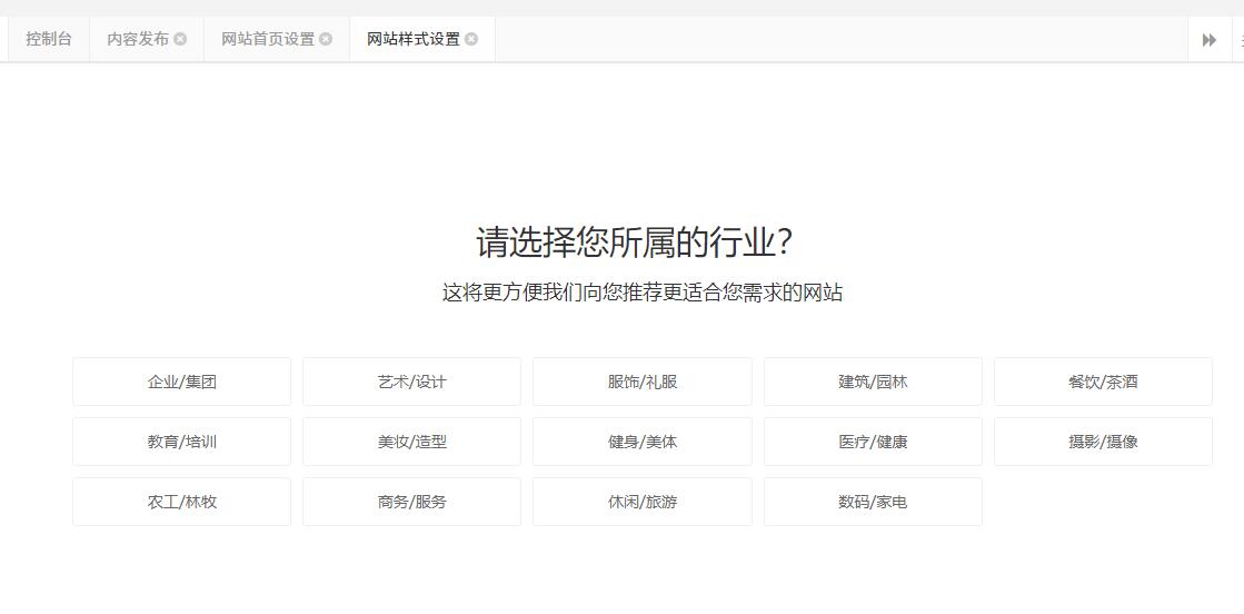 2.網(wǎng)站樣式設(shè)置中選擇所屬行業(yè)
