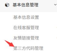 1.進(jìn)入后臺(tái),點(diǎn)擊左側(cè)菜單欄中的【基本信息管理】,在里面找到并點(diǎn)擊【第三方代碼管理】
