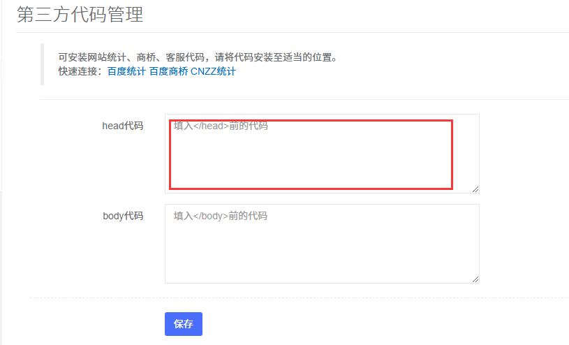 2.在右側(cè)【第三方代碼管理】,在對(duì)應(yīng)的代碼框中黏貼代碼