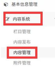 1.進(jìn)入后臺(tái),點(diǎn)擊左側(cè)菜單欄中的【內(nèi)容系統(tǒng)】,在里面找到并點(diǎn)擊【內(nèi)容管理】