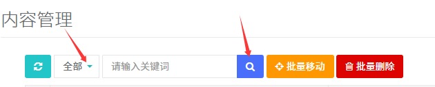 2.進(jìn)入內(nèi)容管理,在【全部】下拉框選擇產(chǎn)品欄目,點(diǎn)擊【放大鏡】搜索